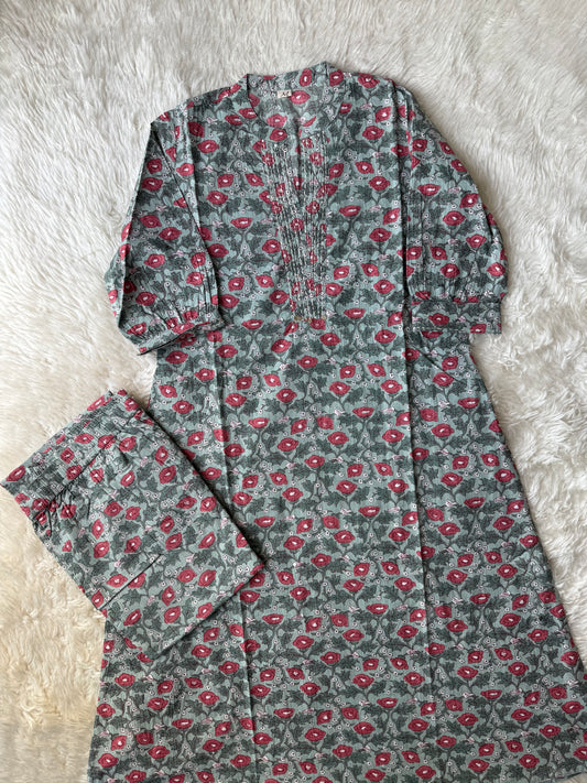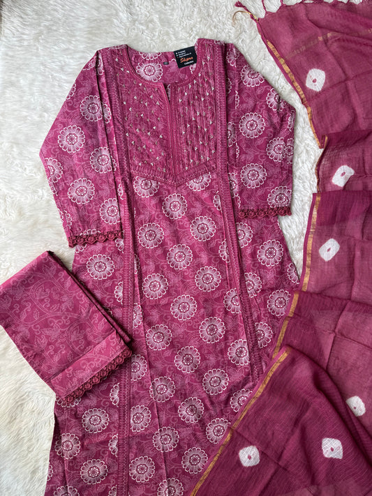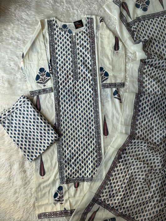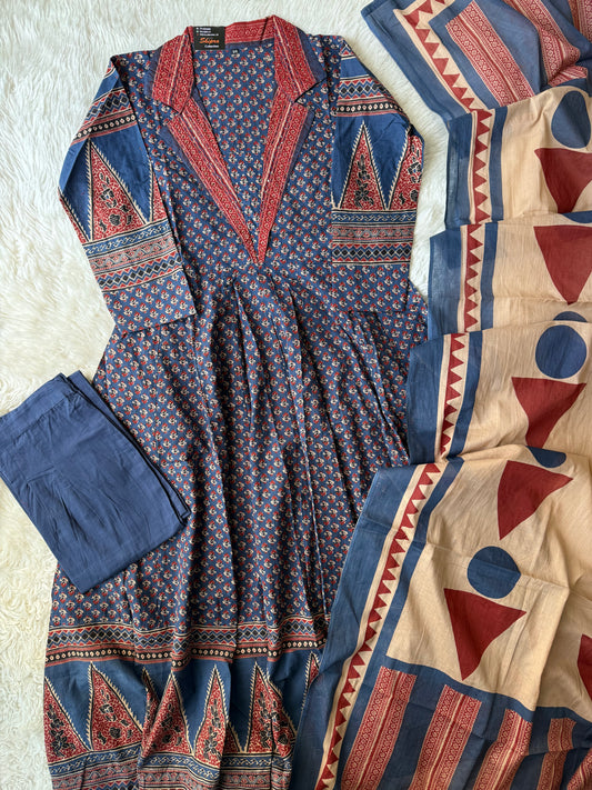 Pure Cotton Aline Kurti Plazo Dupatta Set