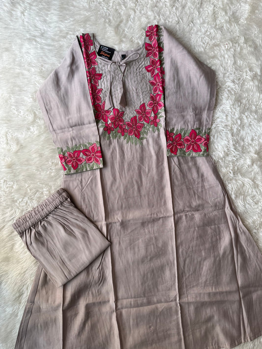Pure Muslin Silk Kurti Plazo Set