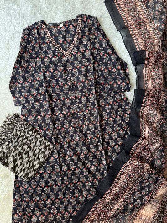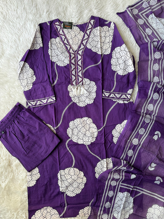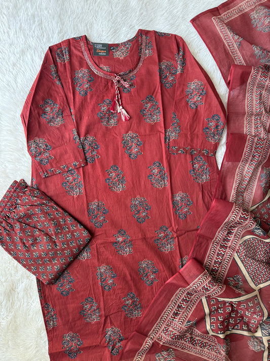Pure Cotton Kurti Pant Dupatta Set