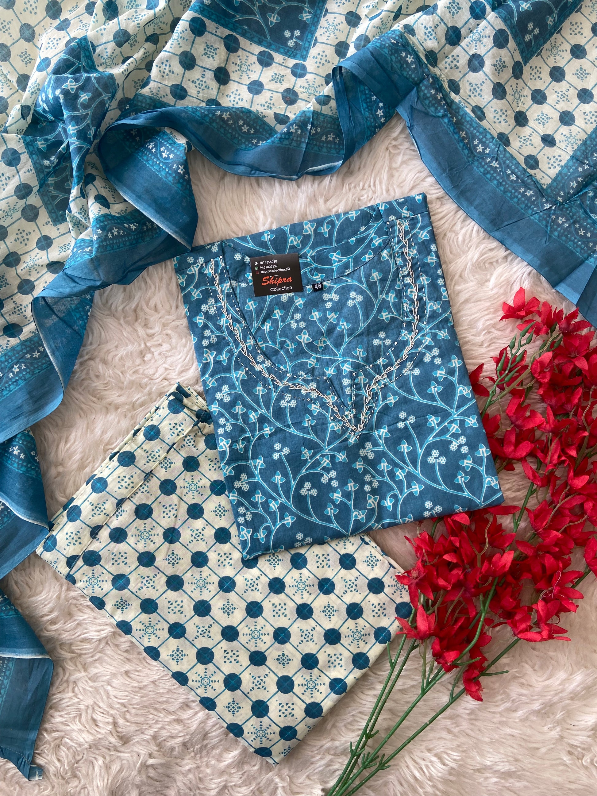 Breathable Cotton Kurti Pant Cotton Dupatta Set