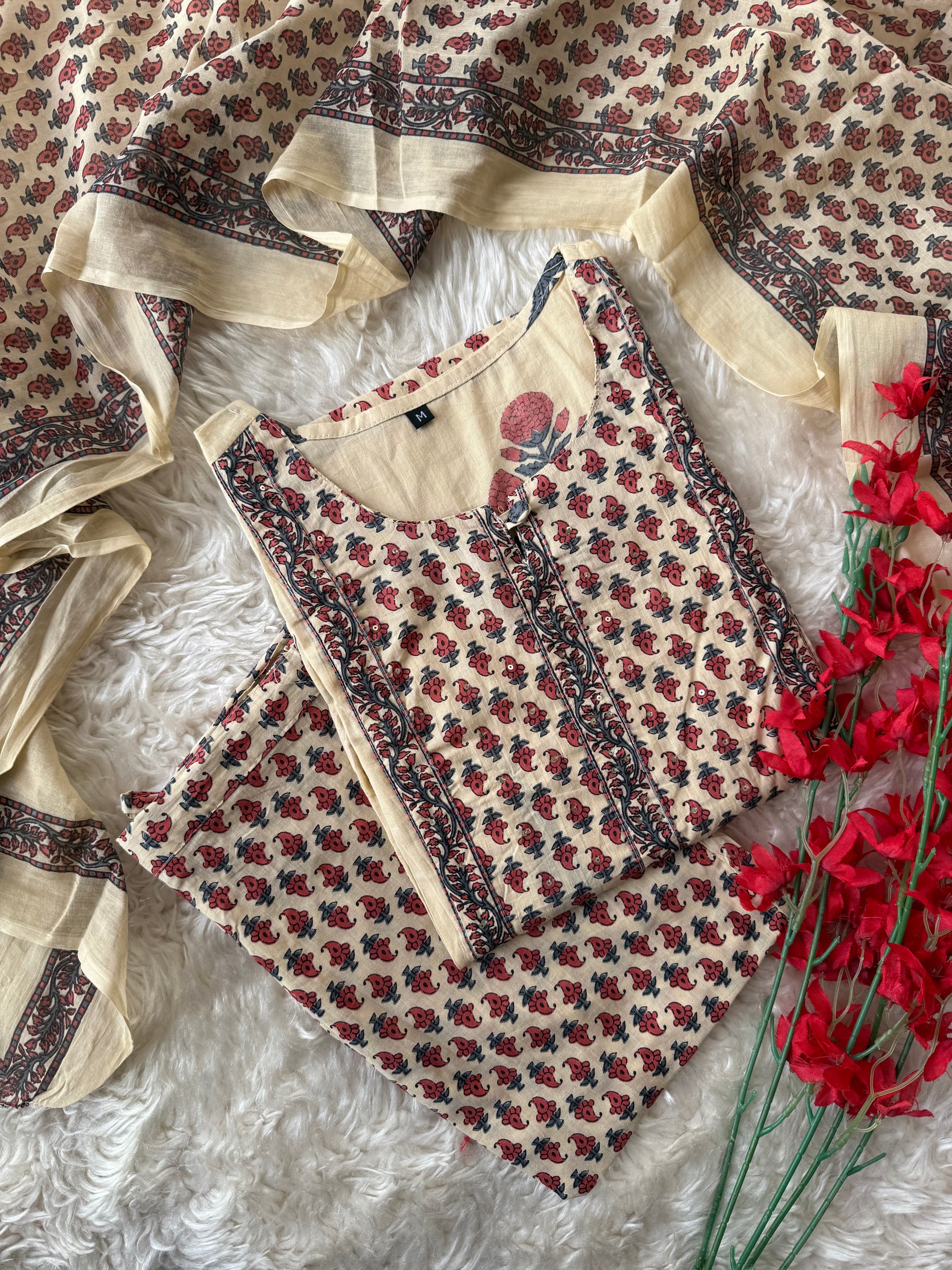 Cotton Kurti Pant Dupatta Set