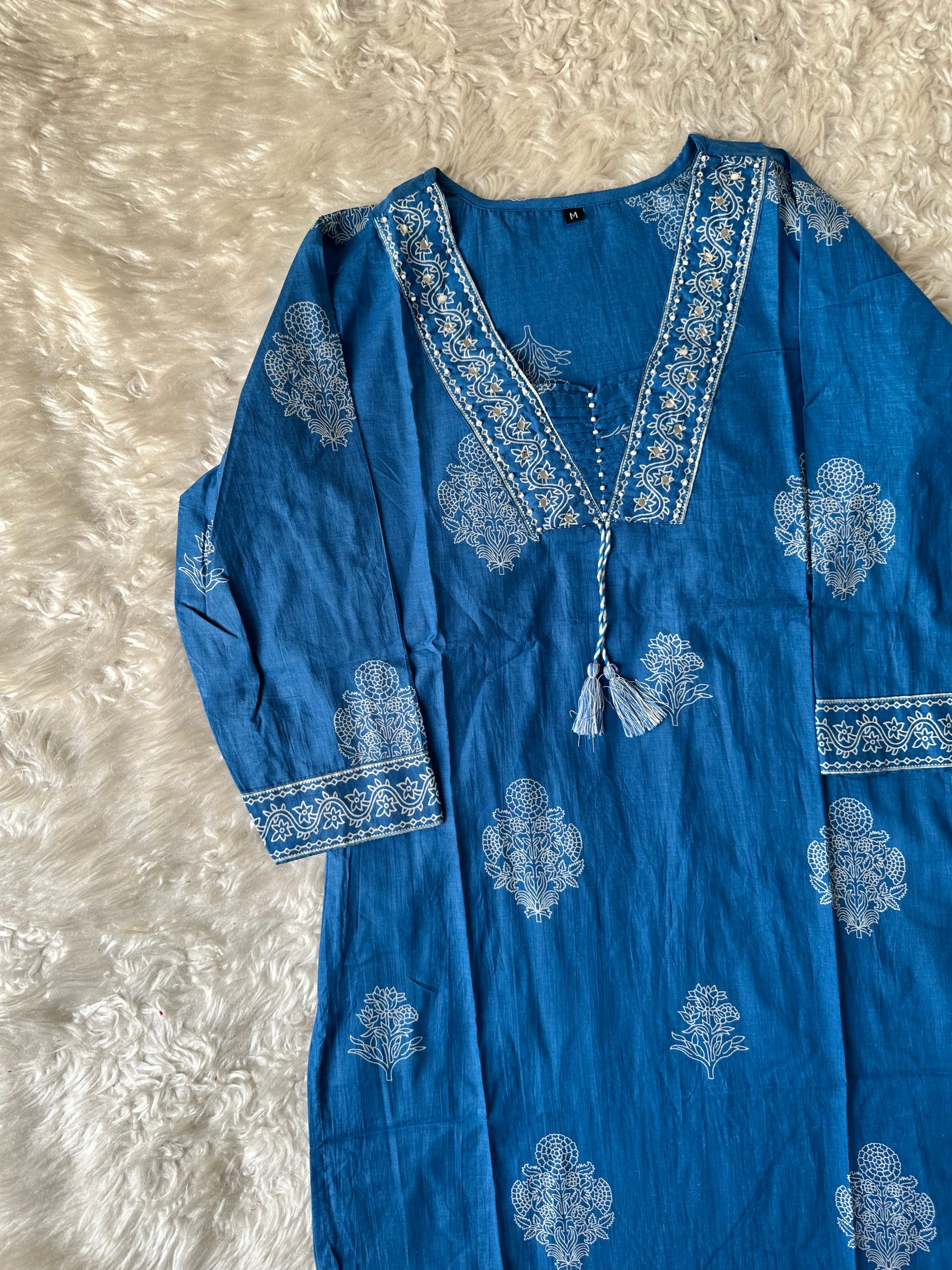 Kurti comes with bead and mirror work on neck