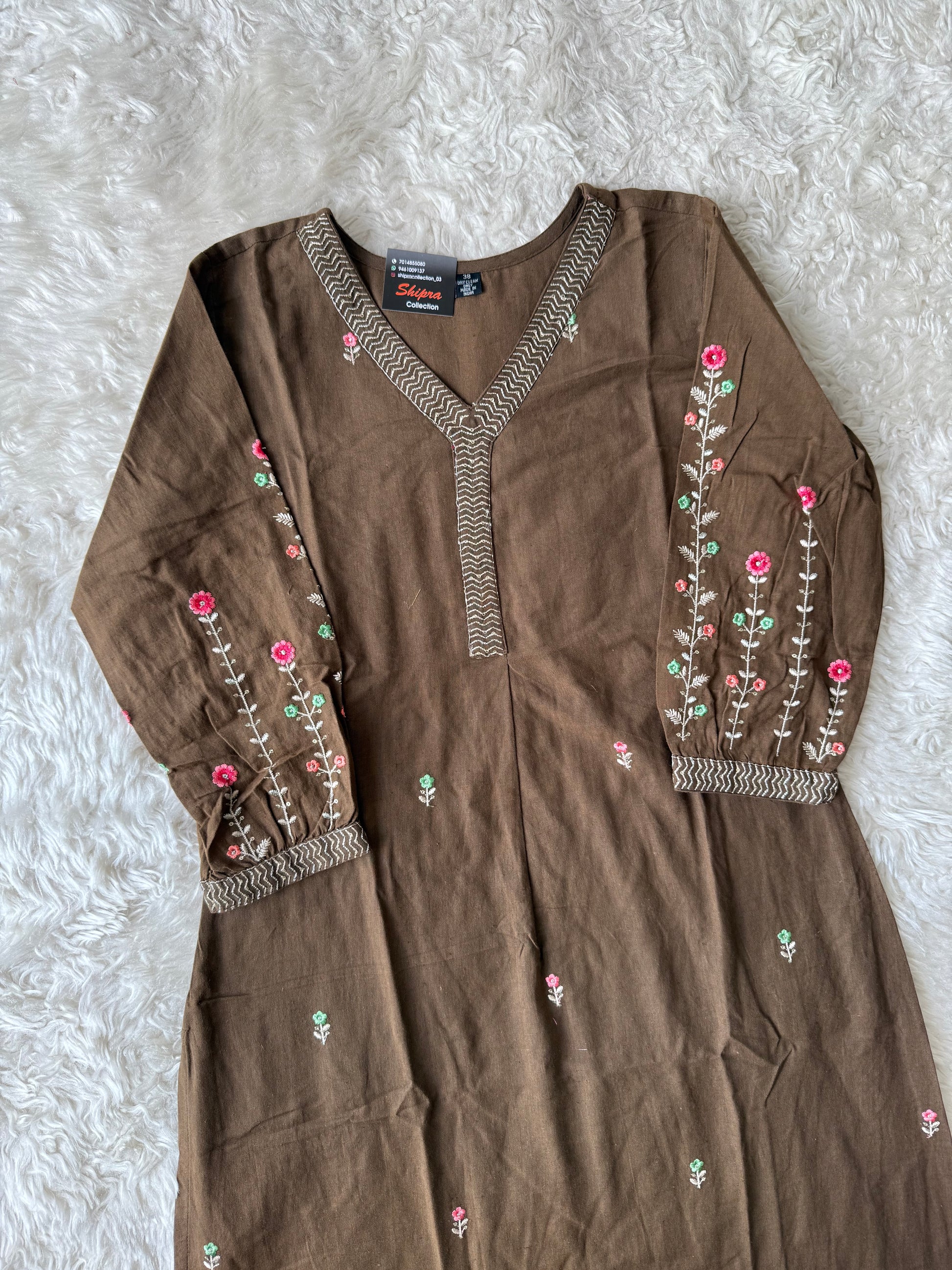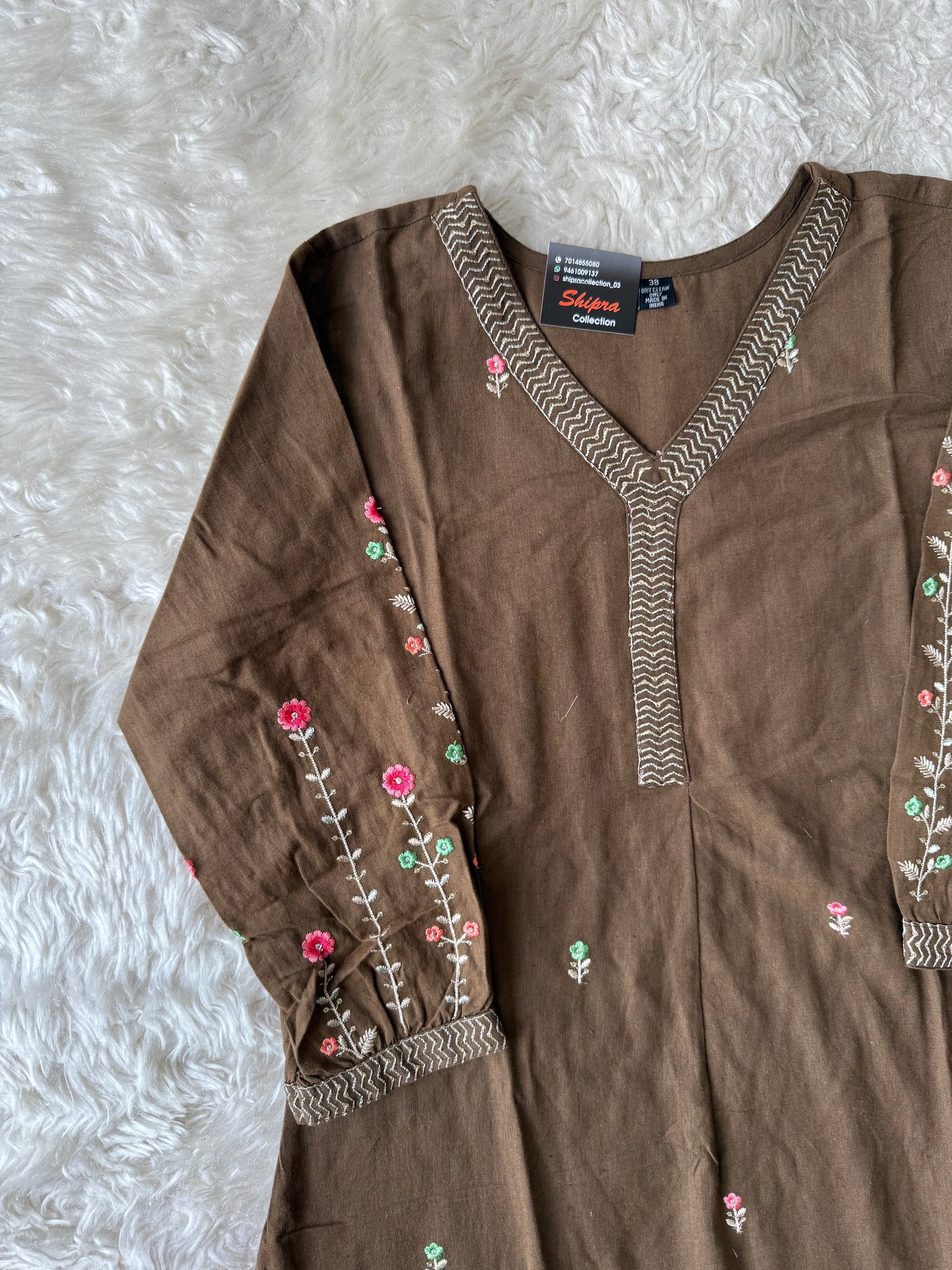 Kurti comes all over boti and detailed thread work sleeves enhances the look