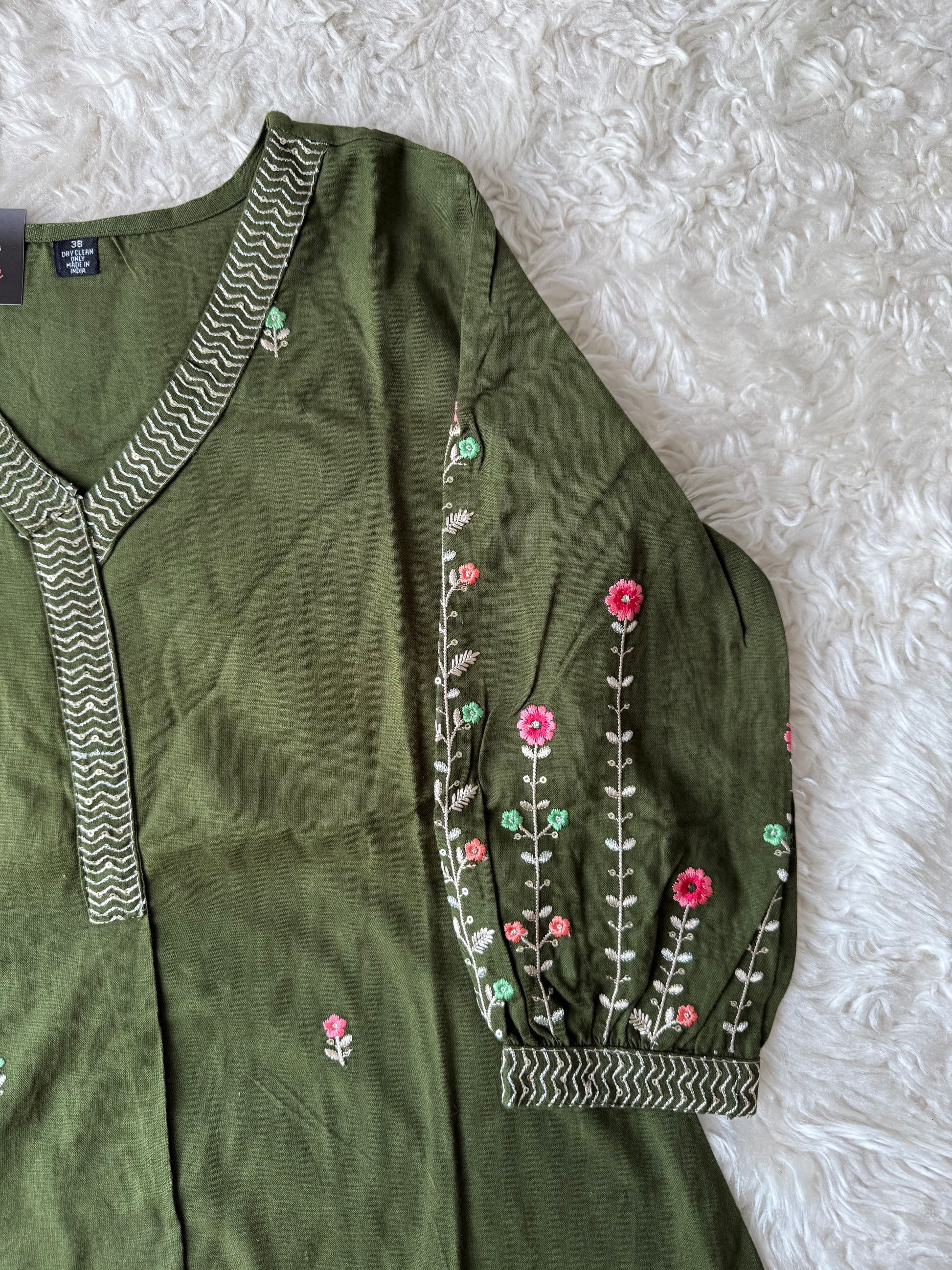 Kurti comes all over boti and detailed thread work sleeves enhances the look