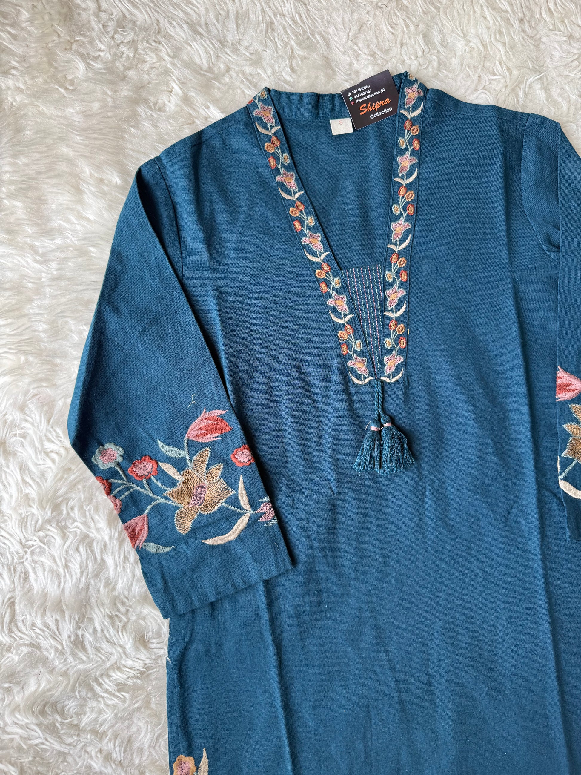 Kurti comes with thread work on sleeves