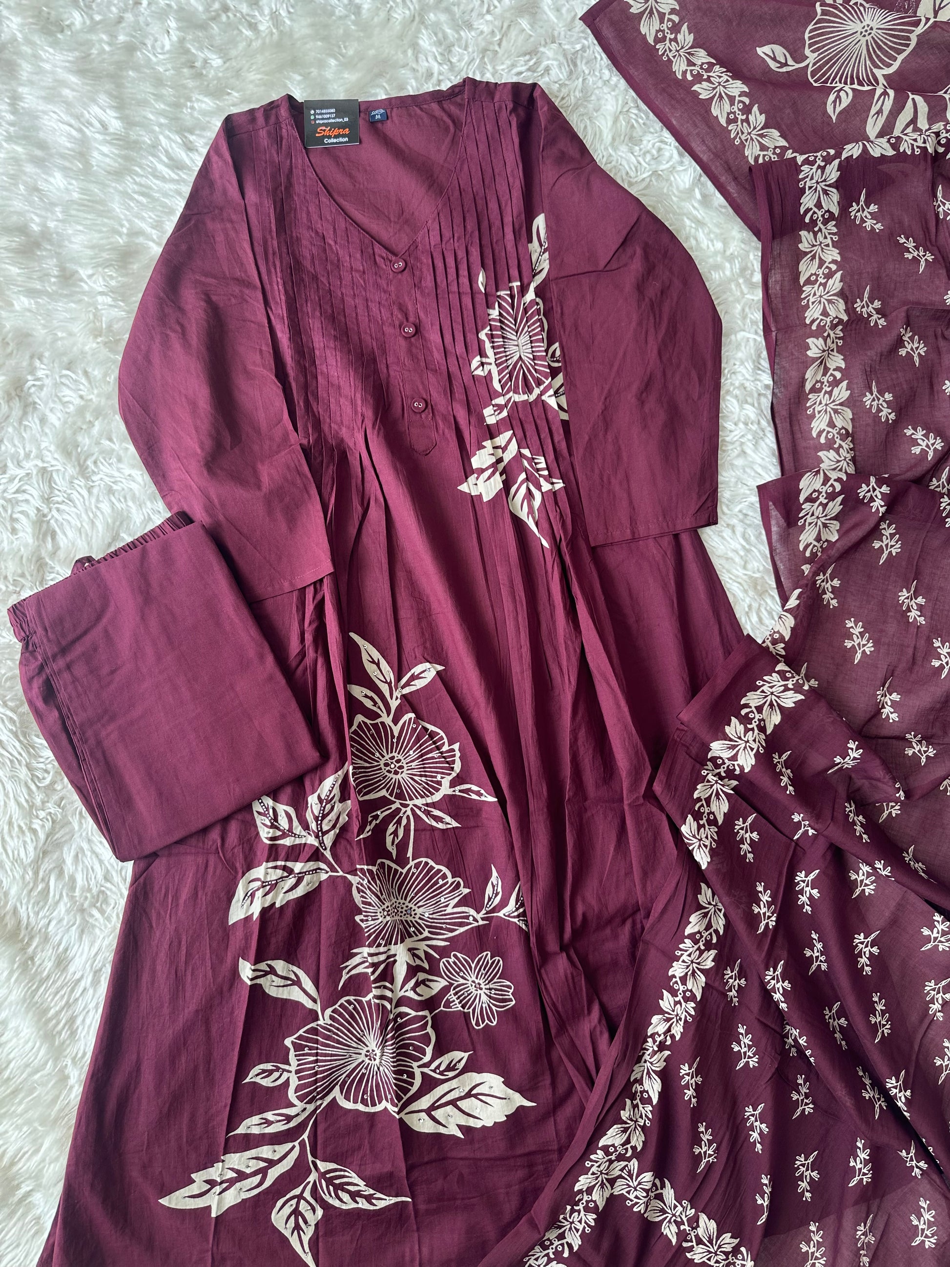 Mul Cotton Aline Flare Kurti Pant Dupatta Set