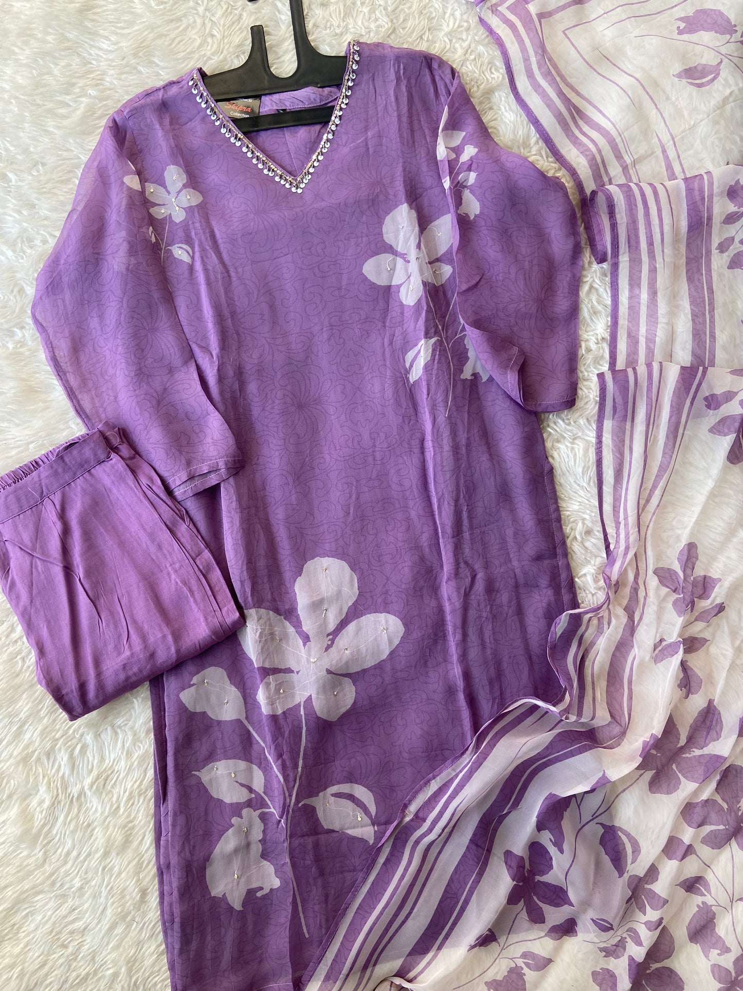 Organza Georgette Kurti Pant Dupatta Set