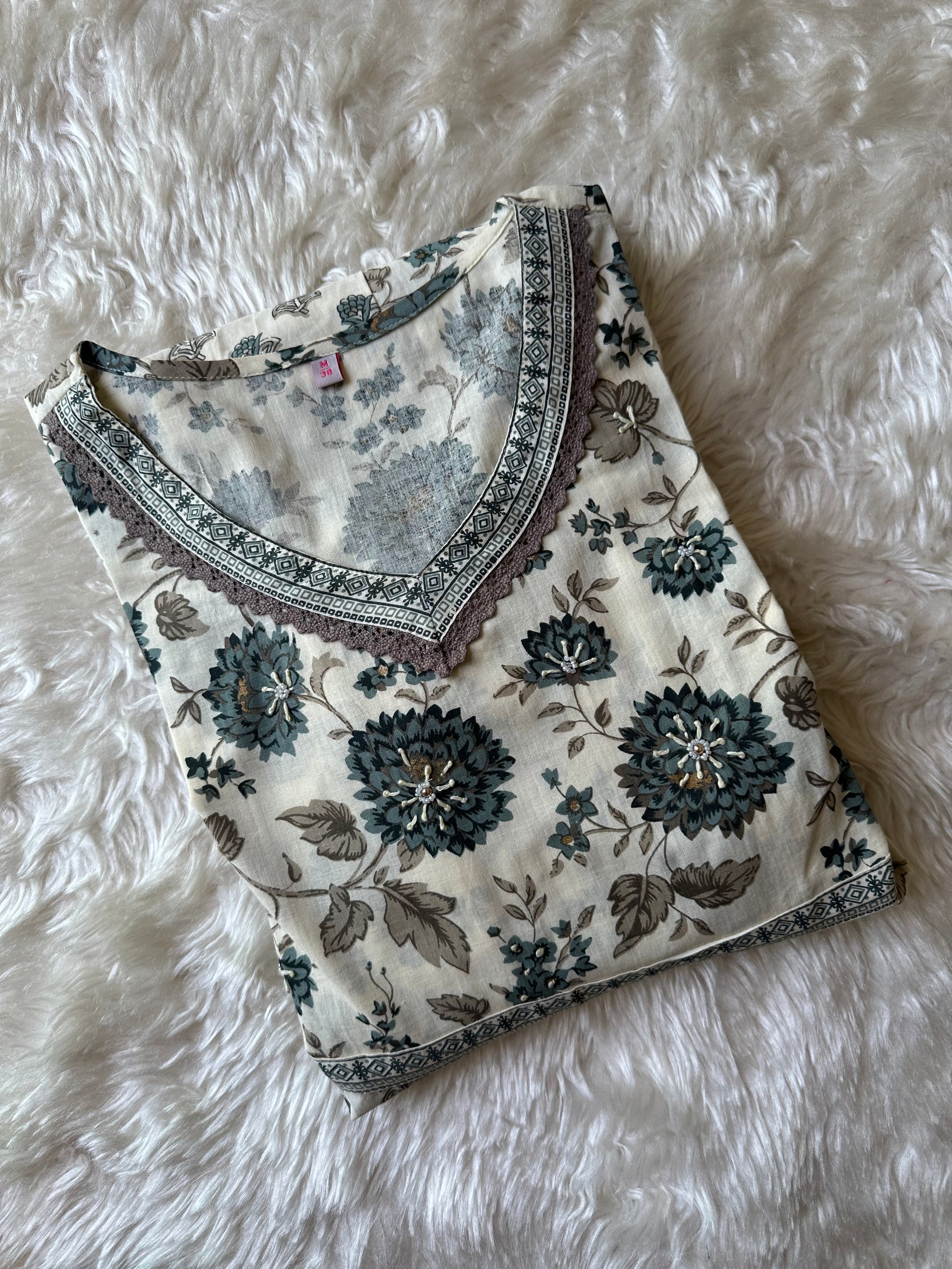 Kurti comes with thread work and lace details