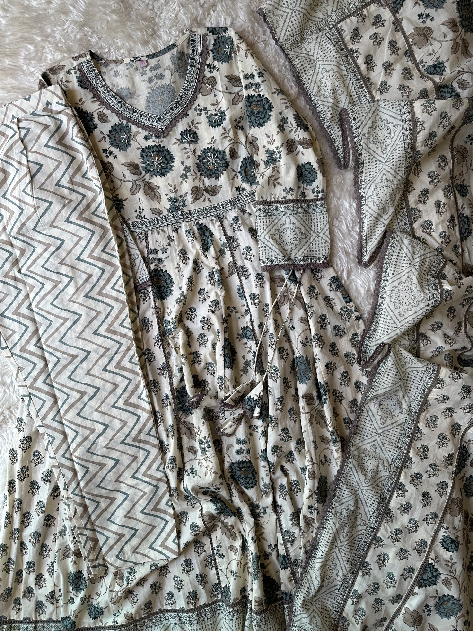 Premium Cotton ANARKALI Kurti Pant Dupatta Set