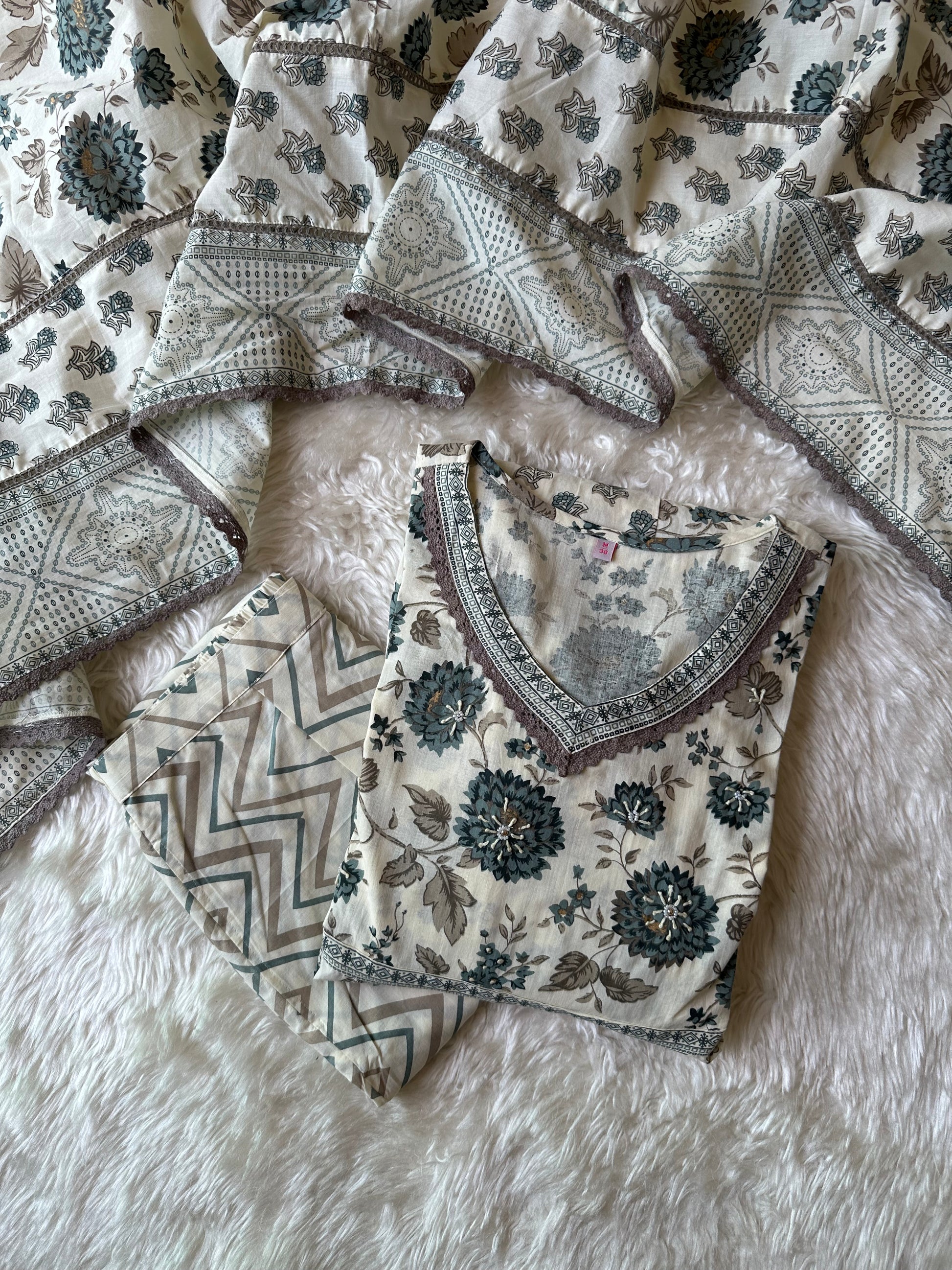 premium Cotton Kurti Pant Dupatta Set