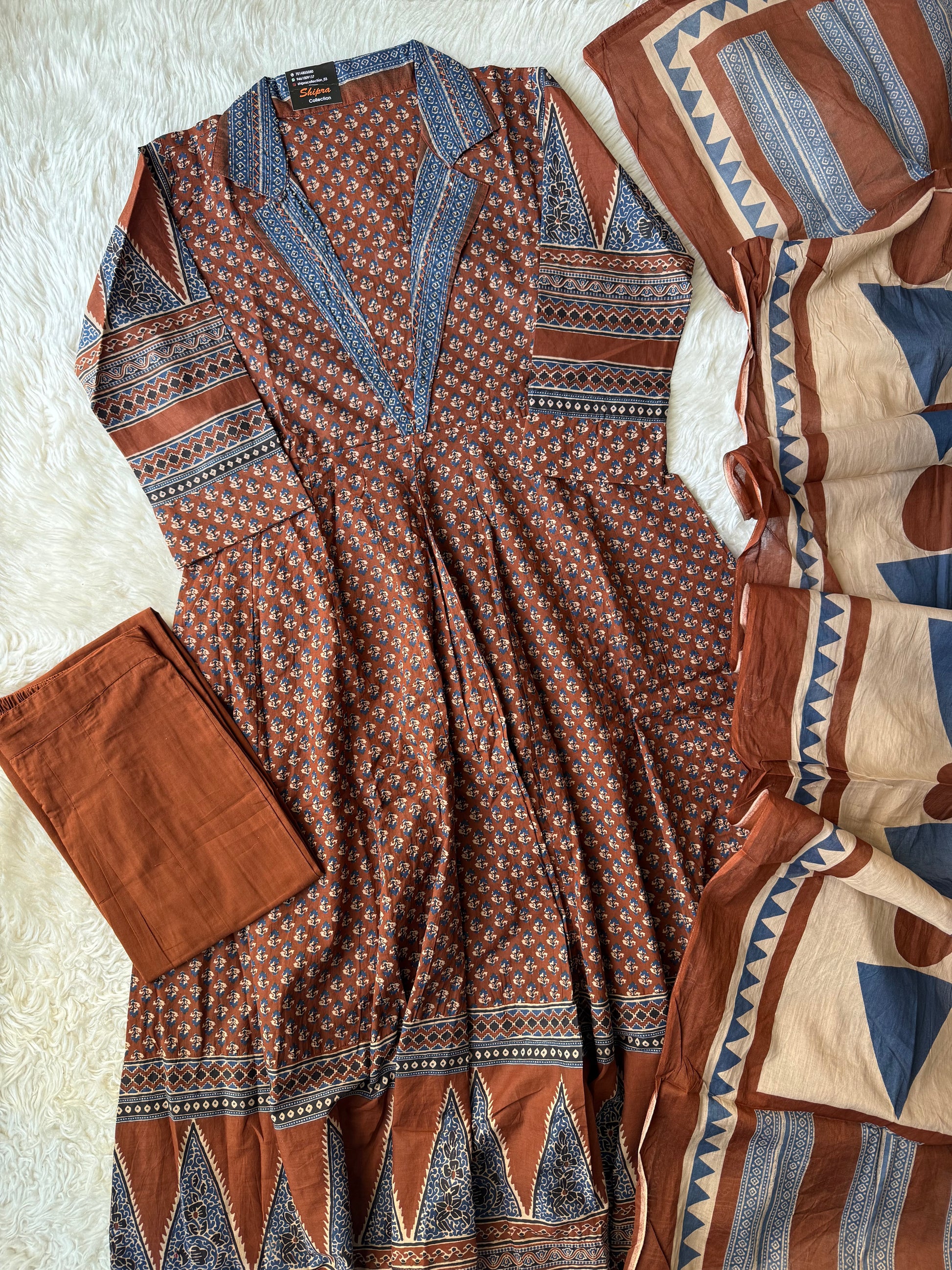 Premium Cotton Flare Kurti Pant Dupatta Set