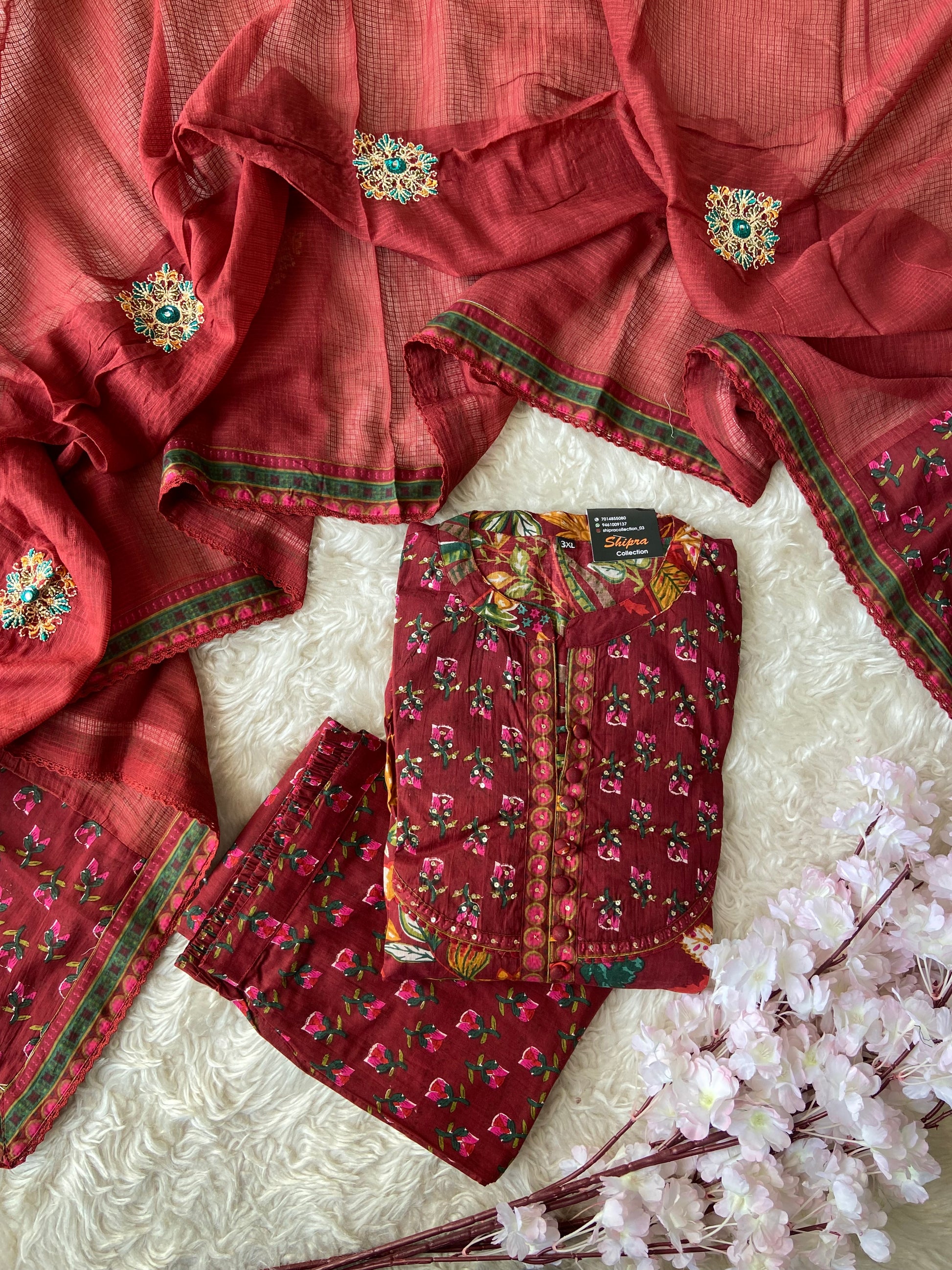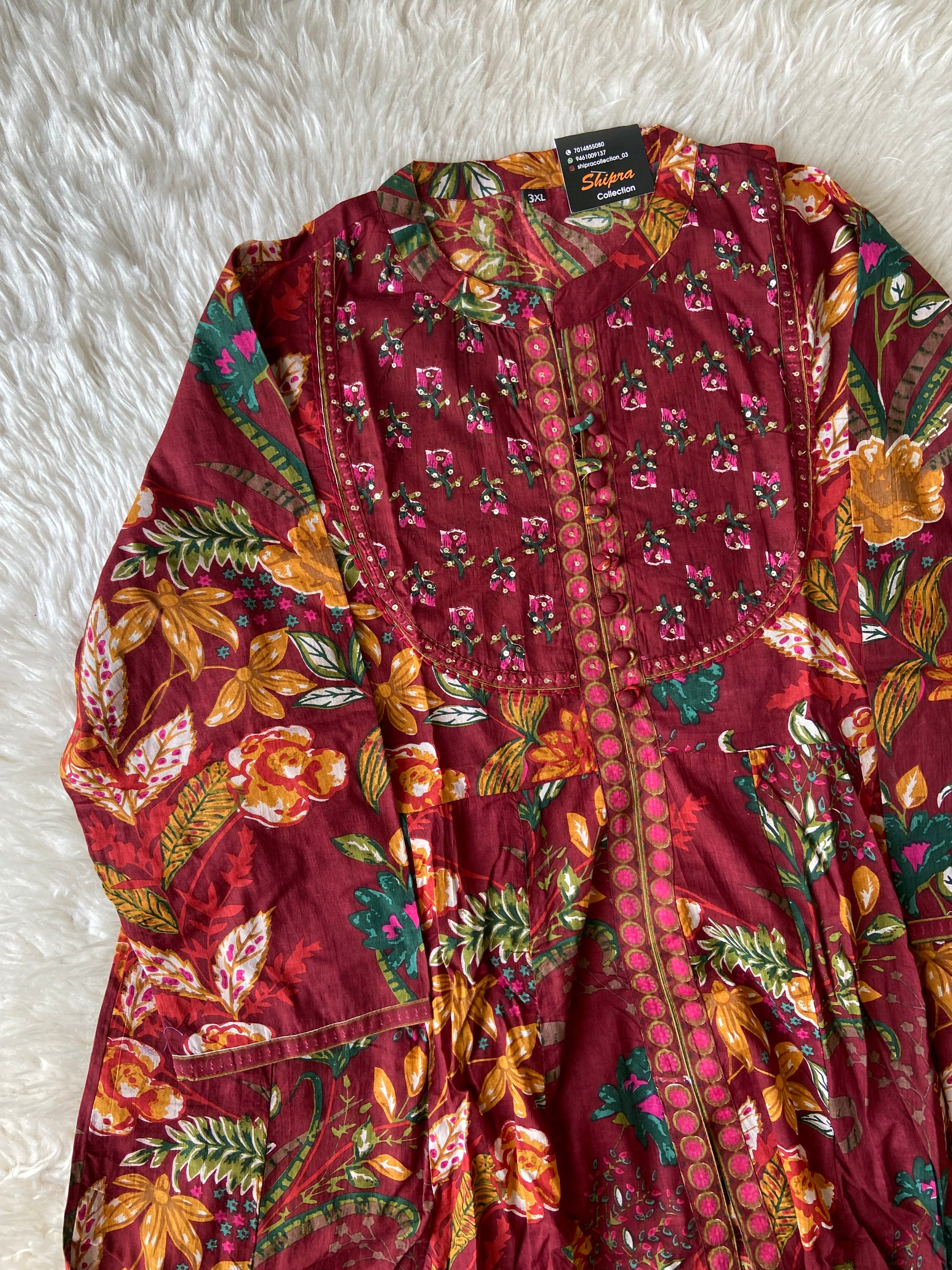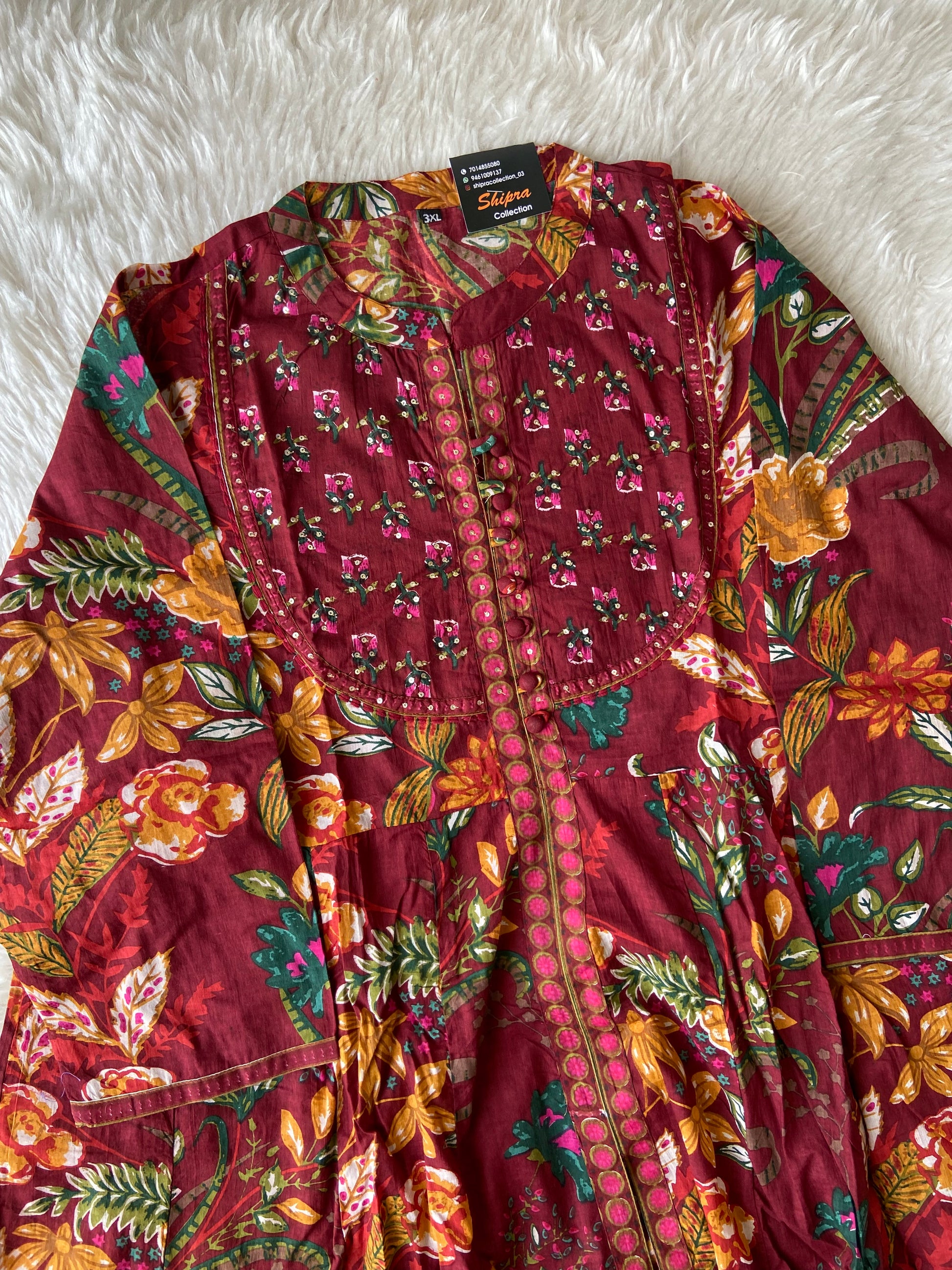 Premium Cotton Flare Kurti Pant Dupatta Set