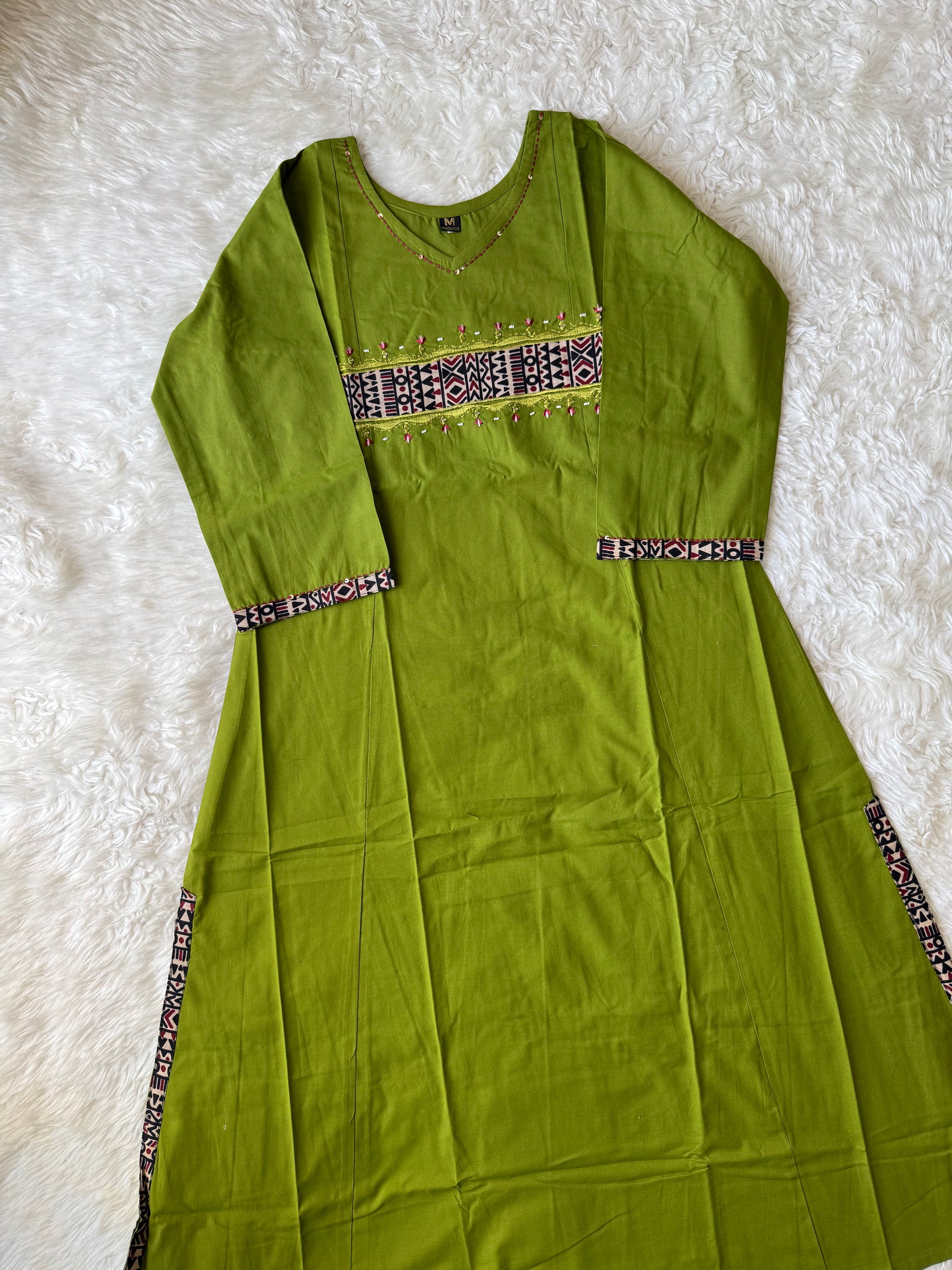 Pure Cotton Aline Kurti Plazo Dupatta Set