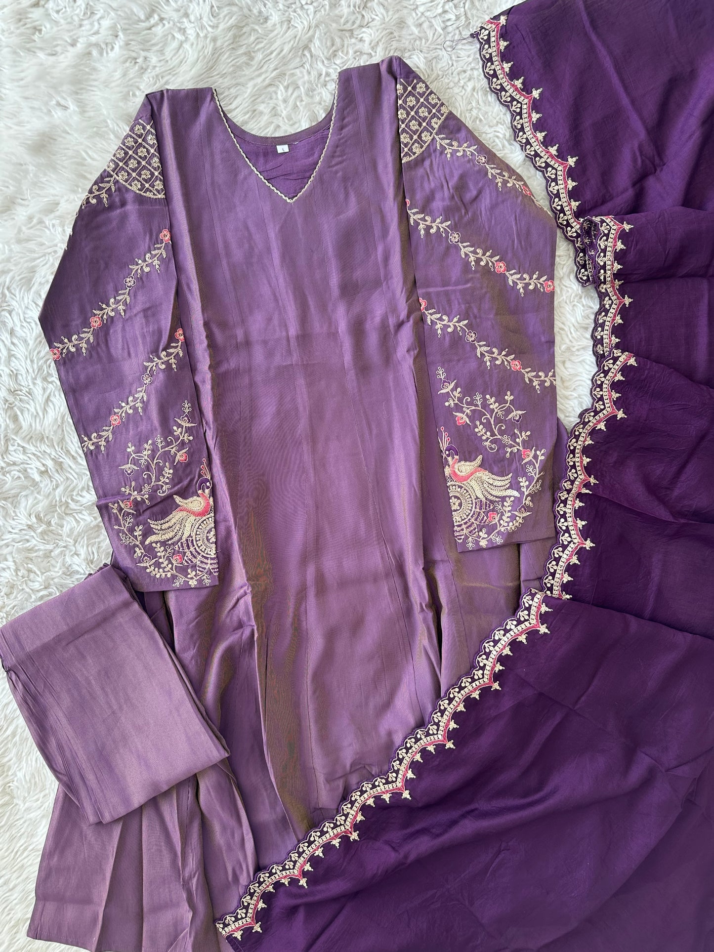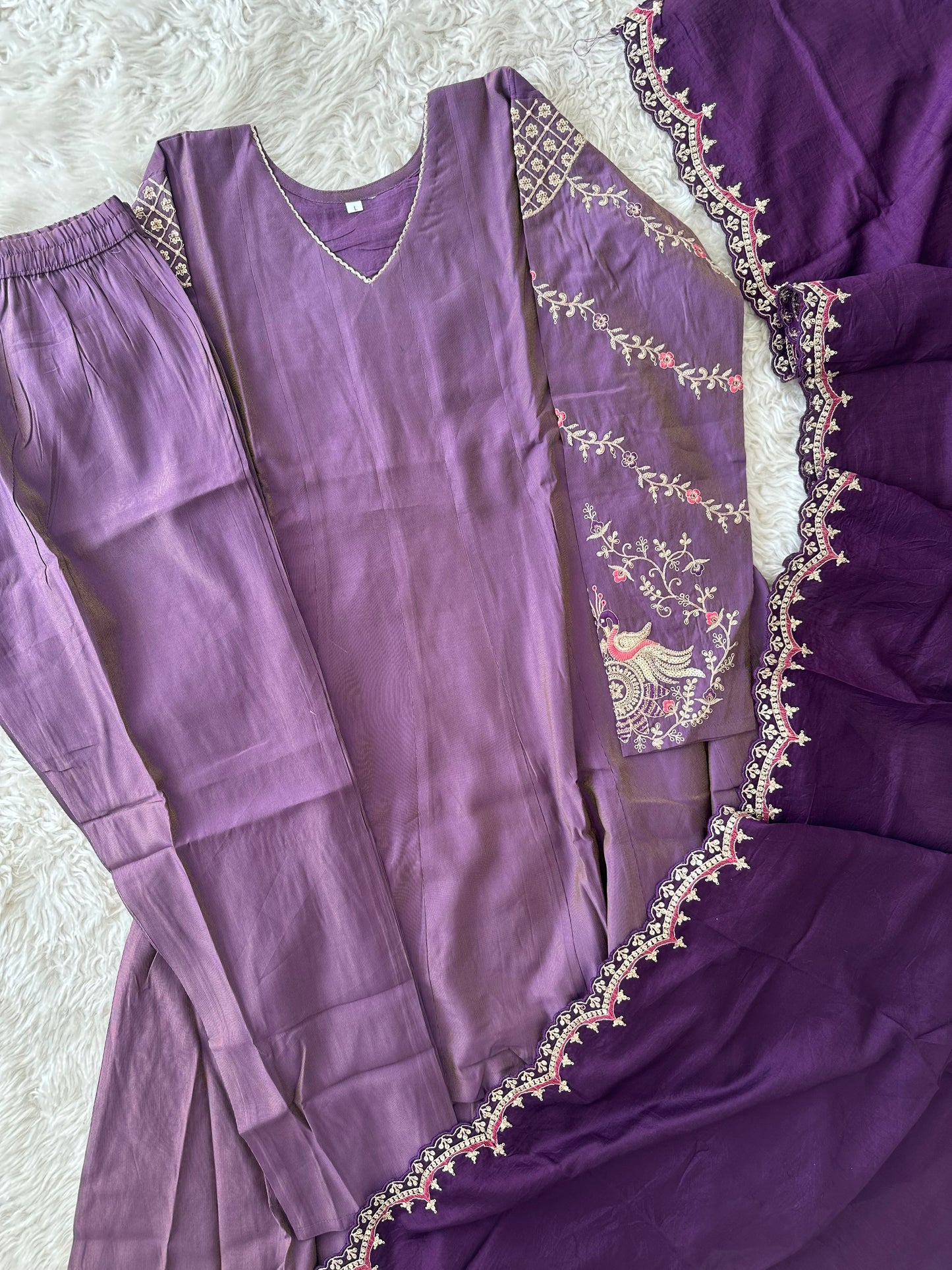 Pure Muslin Silk Flare Kurti Pant Dupatta Set