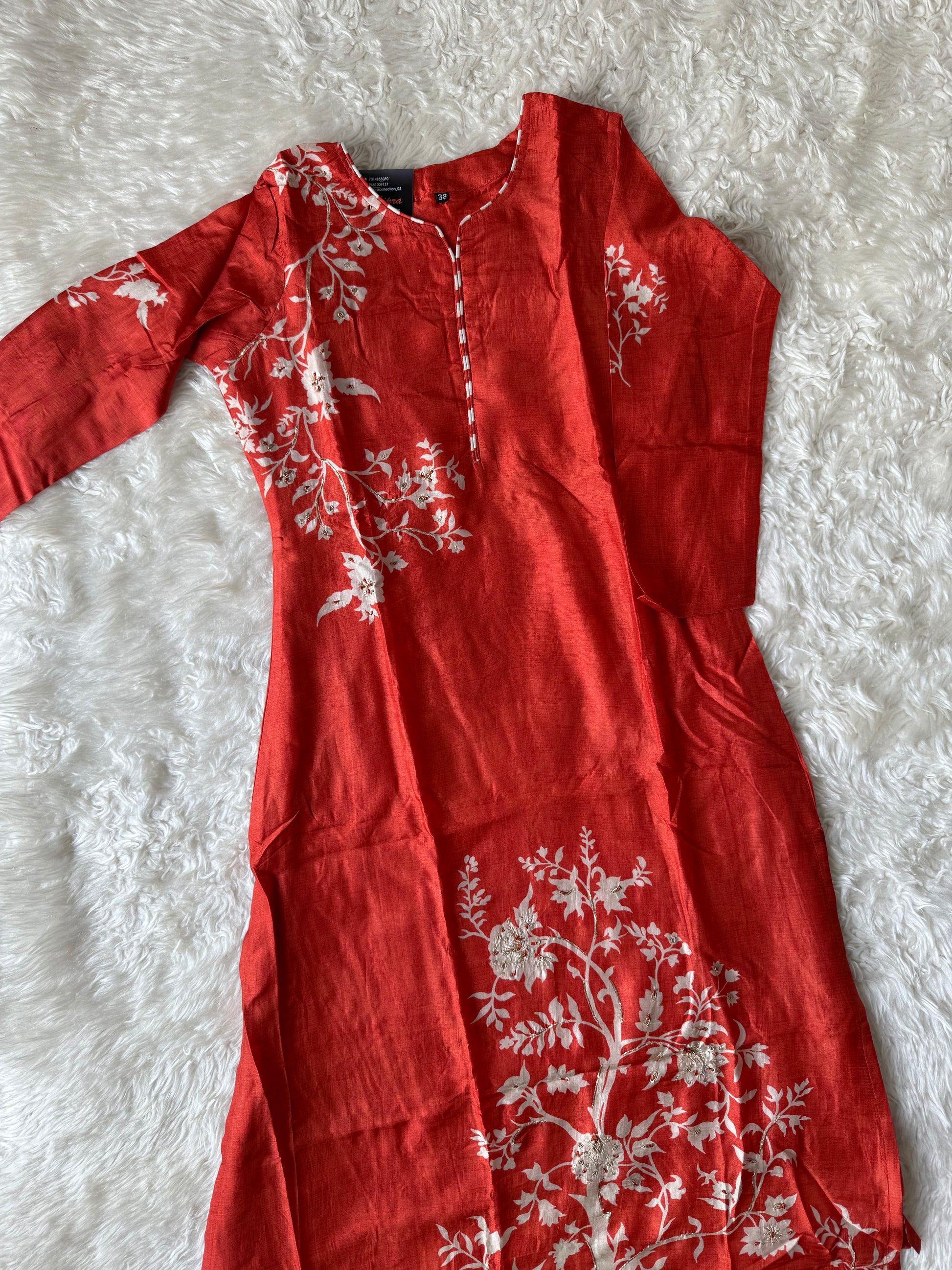 Kurti comes aline Pattern and elegant zari and sequence work details