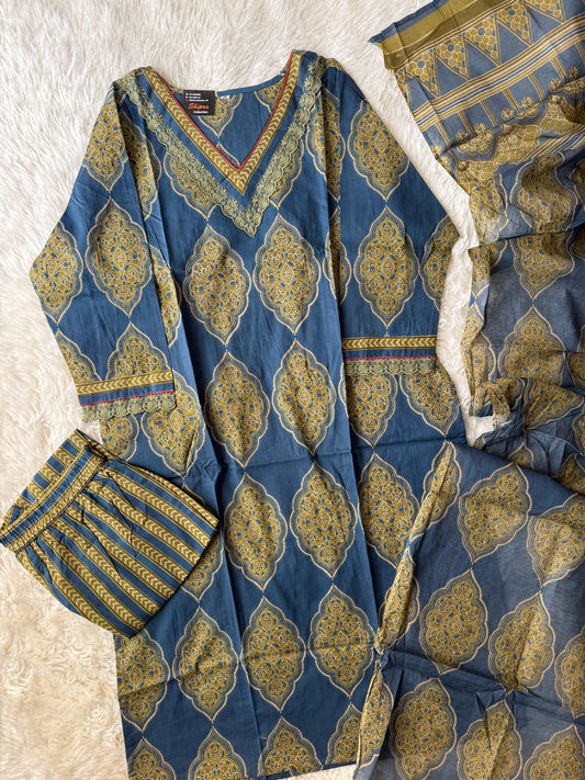 Pure Cotton Kurti Pant Dupatta Set